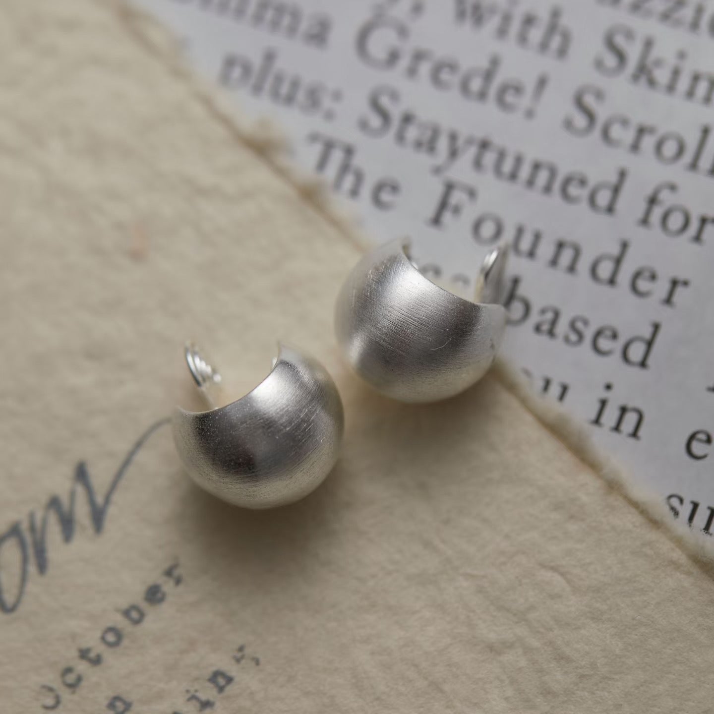 シンプルで洗練されたデザインが魅力の、マットシルバーボールピアス/イヤリング。